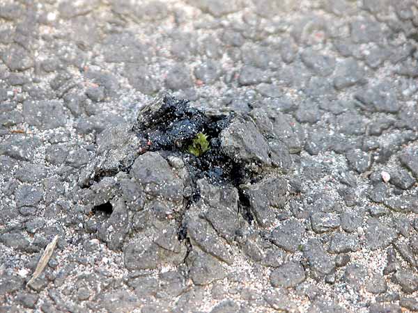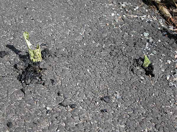 Jo, det finns såna. På första bilden är det pestskråp som vill upp men på andra bilden vet jag inte än. Undrar om den går att skydda med en trafikkon? Det är ju bara i kanten på en gång och cykelbana.
