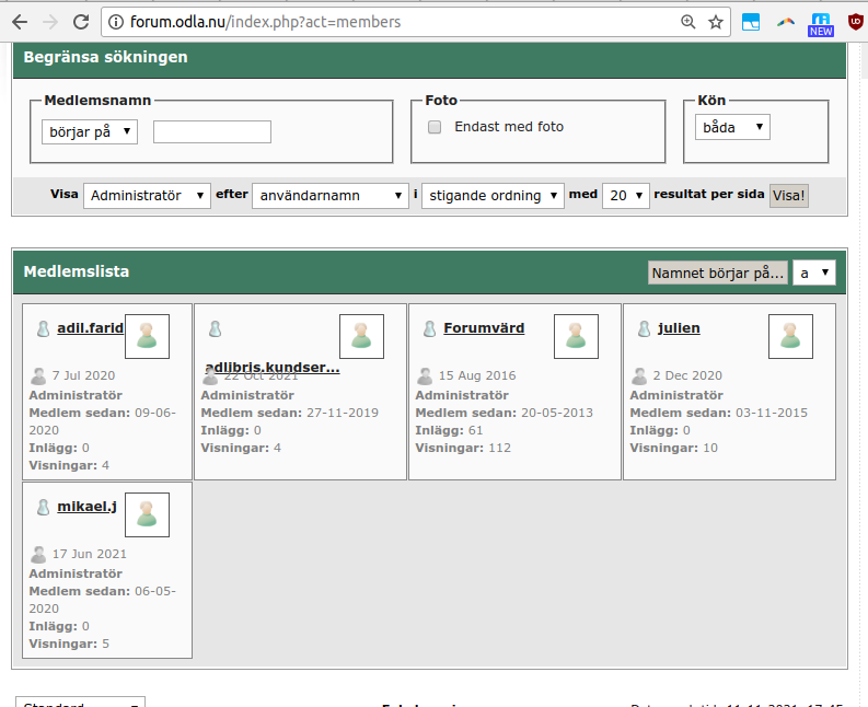 CITAT (silos @ 11-11-2021, 17:22)  Tyvärr finns det inte varken admin eller moderatorer här! verkar inte som forumets medlemlista håller med om den saken, men visst verkar de inte särskilt aktiva. men vissa brukar ha dubbla konton. ett som de lurkar runt och ev. svarar inlägg på, och ett annat där de gör administrativa uppgifter.