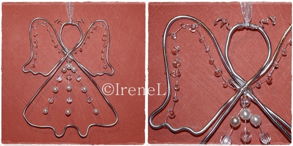 Den första ängeln jag gjorde tyckte jag inte riktigt om vingarna på. De blev lite för mycket likt en fjäril. Men som en väninna sa...det är en fjärilängel..hihi. Den är ca 20 cm hög. Så här ser den ut: