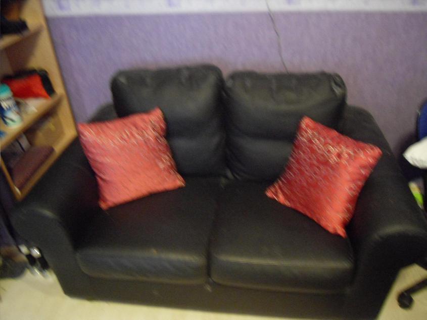 Soffan är gammal, lite nedsutten och sliten i sömmar på utsatta ställen, men jag älskar den. På ett ställe har skinnet verkligen gått sönder på en 6-7cm, på nåt ställe är det bara skavt och matt och på ytterligare ställe finns nån reva (ev av hundklor).