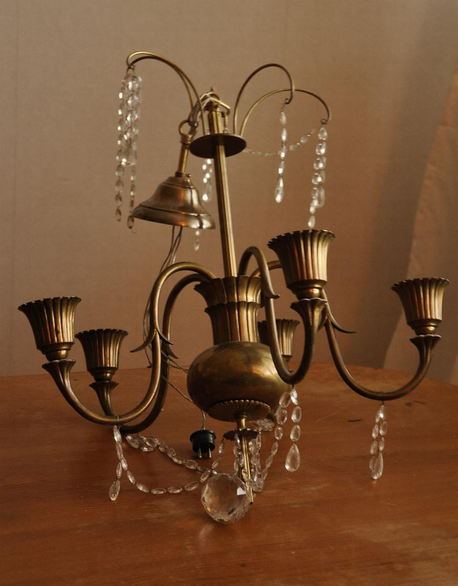 (Vi har en gammal kristallkrona i badrummet, passar superbra där ! Det känns otroligt lyxigt när man ligger i badkaret med badskum upp till hakan ...)