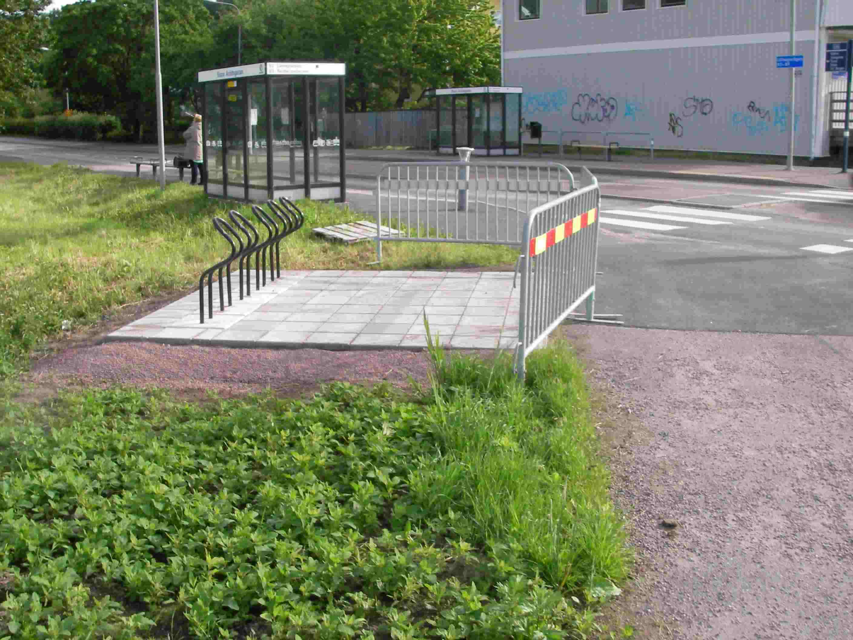 Här bygdes en cykelparkering vid busshålplatsen, vi väntar med spänning på invigningen och att den öppnas
