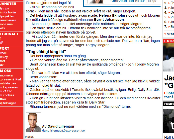 Jag hade nog hejjat fram Mogren ända till slutet, utan att ha sett den andra omgången tävlande, men självklart kul att Bernt gick vidare igår. Läste i dagens Expressen detta men förstår inte riktigt vad det sista i stycket hade med saken att göra...? Var det kanske därför som Mogren inte hängde med?
