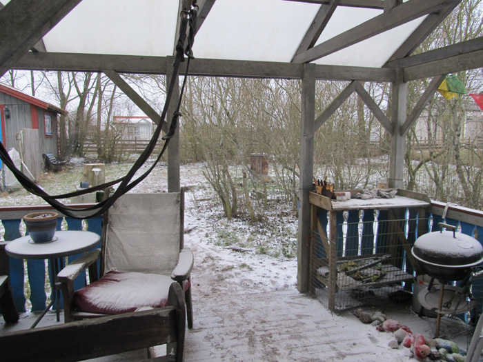 Det har blåst som f-n i natt men ingen snö. Inte förrän nu, stormen har övergått till snöstorm. Tur att jag inte behöver lämna huset mer än att kolla brevlådan.