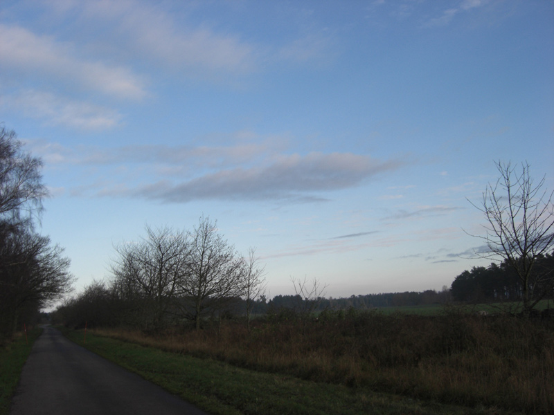Jag känner knappt igen vädret. Igår duggregnade det nästan hela dagen. På kvällen klarnade det dock upp så på natten var det stjärnklart. Idag är det fortfarande klart och solen skiner mig i ögonen. Runt 0 grader med markfrost.