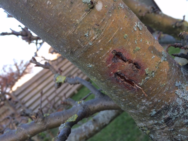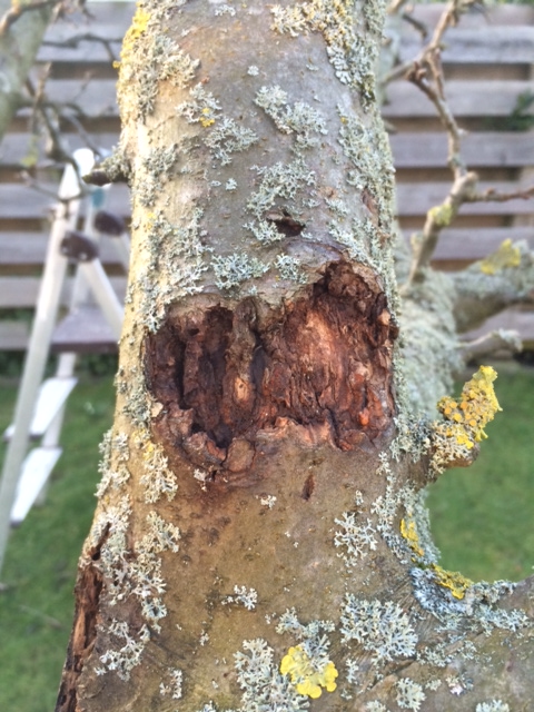 Fruktträdskräfta. Kan på sikt ta död på trädet men har du tur lever det länge till. Det finns mängder med trådar om saken, både här, under Träd och under Skadedjur.