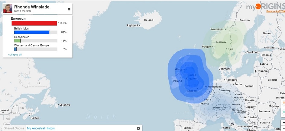 Jag har också låtit testa mig (mtdna) familytreedna.com (se bilden) o där fick jag resultatet bl.a 14% (!) Skandinavisk dna (jag kommer från Australien). Det är inte konstigt när man vet att Dannarna hade erövrat halva England o Nordmännen var i nordligaste Scotland (där min farmors mormor kom ifrån)