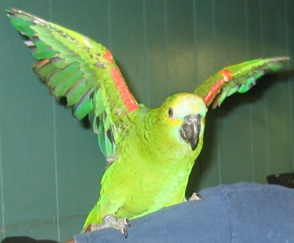 Efter att ha gått runt lite ser hon en papegoja och bestämmer sej för att köpa den.