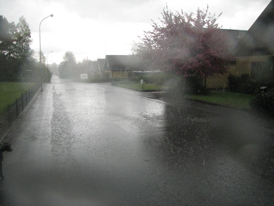 Vi blev inte dränkta i natt, 5 mm kom det. Eftersom det var maj-väder i april så har vi helt följdriktigt april-väder i maj. Ibland är himlen helt blå, nu är det helmulet och det kommer lite regnstänk. ca 14 grader.
