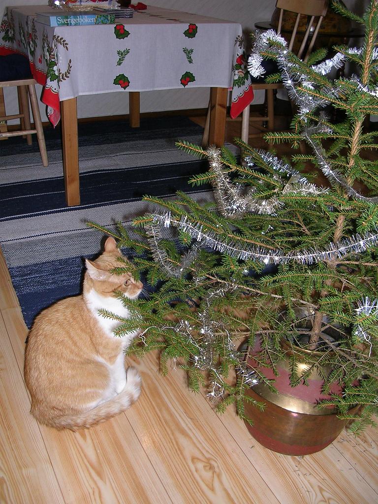 När jag väl förankrat den i julgransfoten, så lutade skräpet.