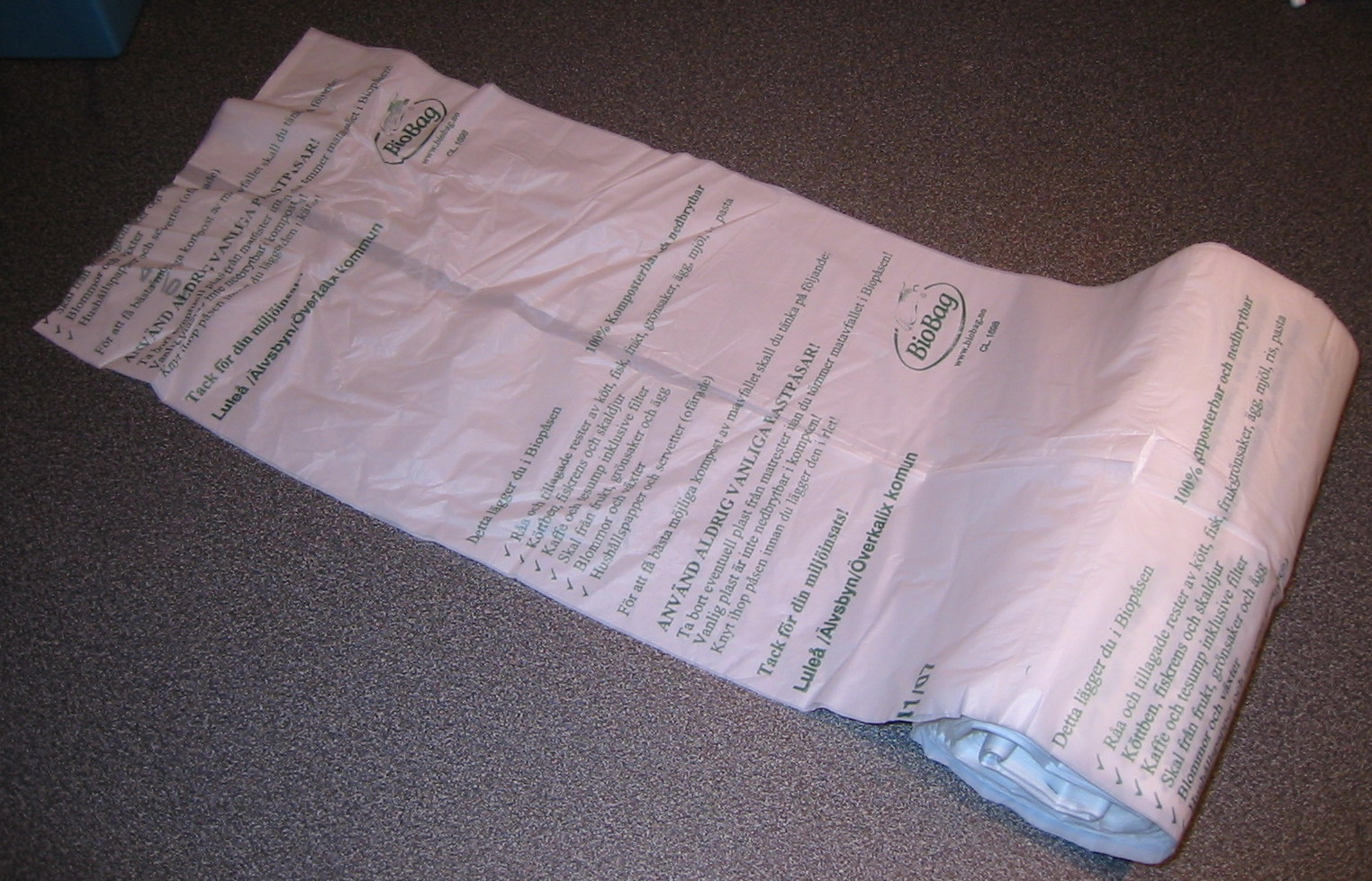 Påsarna skulle vara gjorda av nedbrytbar majsstärkelse, eller nåt sånt...