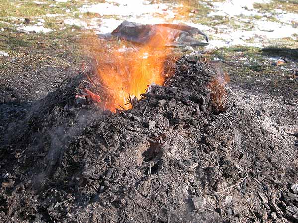 På med dammsugaren och in med röret i glödhögen och vips får man en vulkan.