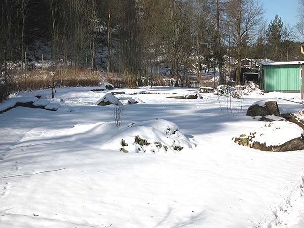 För att få unden den dm snö som låg på eldplatsen funderade jag först på att skotta men testade med att rulla snöbollar istället, det var ju kramsnö. Det gick bra och om jag bara kunnat lyfta bollarna hade det blivit 2 fina snögubbar men det var nätt och jämnt att dom gick att rulla.