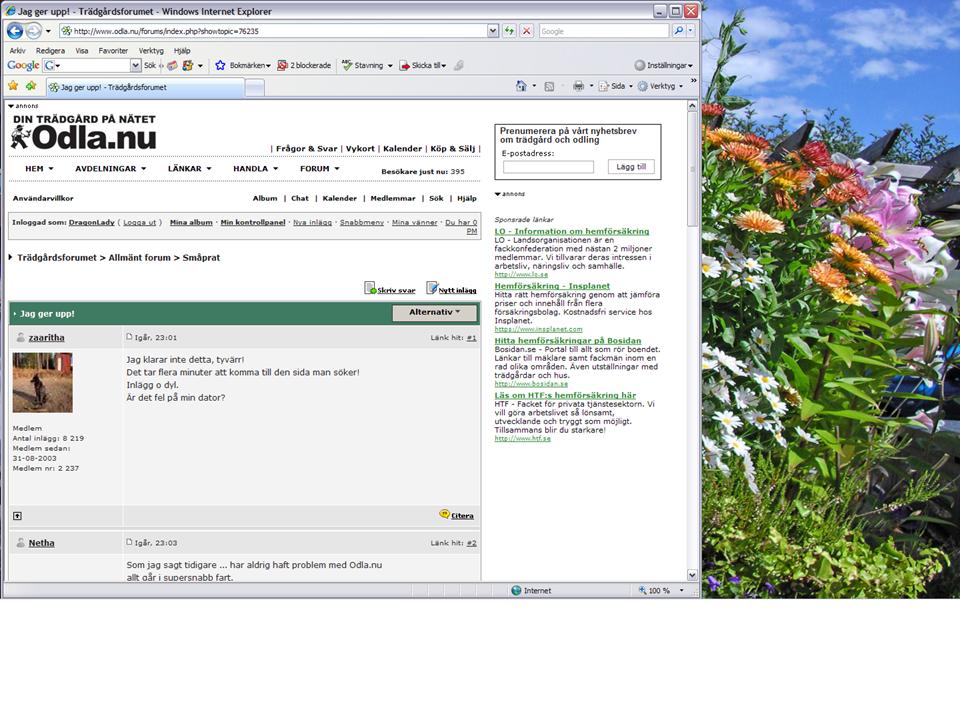 Använder jag däremot en "ren" sida så går Odla-forumet klockrent.
