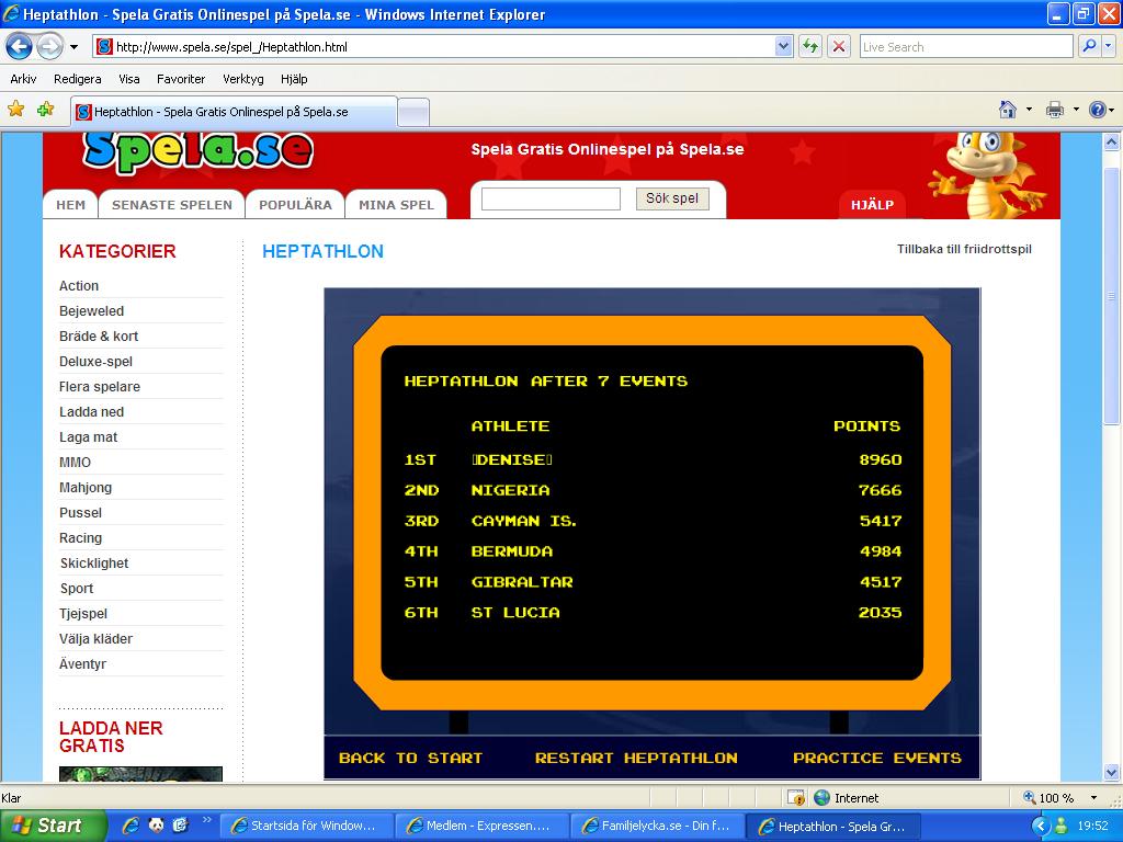 men jag är sur på spjutkastningen. jag fick ogiltigt kast bara för att jag kastade över 100 meter. banan är bara 100 meter och jag kastade utanför den
