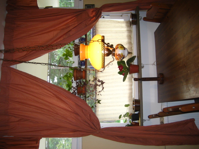 Jag tycker nog att bejrons förslag var bra kappa med paneler skulle kunna bli bra det är inte fel att hänga kappan helt rak (utan rynkor) ihop med paneler. Eftersom du har som jag kan se rätt så mycke kappa så skylle den kunna räcka över hela stången. Har du en stång eller två stänger, finns det plats att sätta längderna bakom kappan?