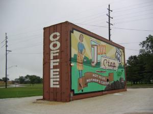 Det här var ett roligt drive-in cafe, 2 containers ovanpå varann. I Dwight, Illinois. Lite regn då o då första dagarna, men otroligt varmt och fuktigt. Tropisk känsla med fukten och ljudet av syrsor, grodor och vacker fågelsång.