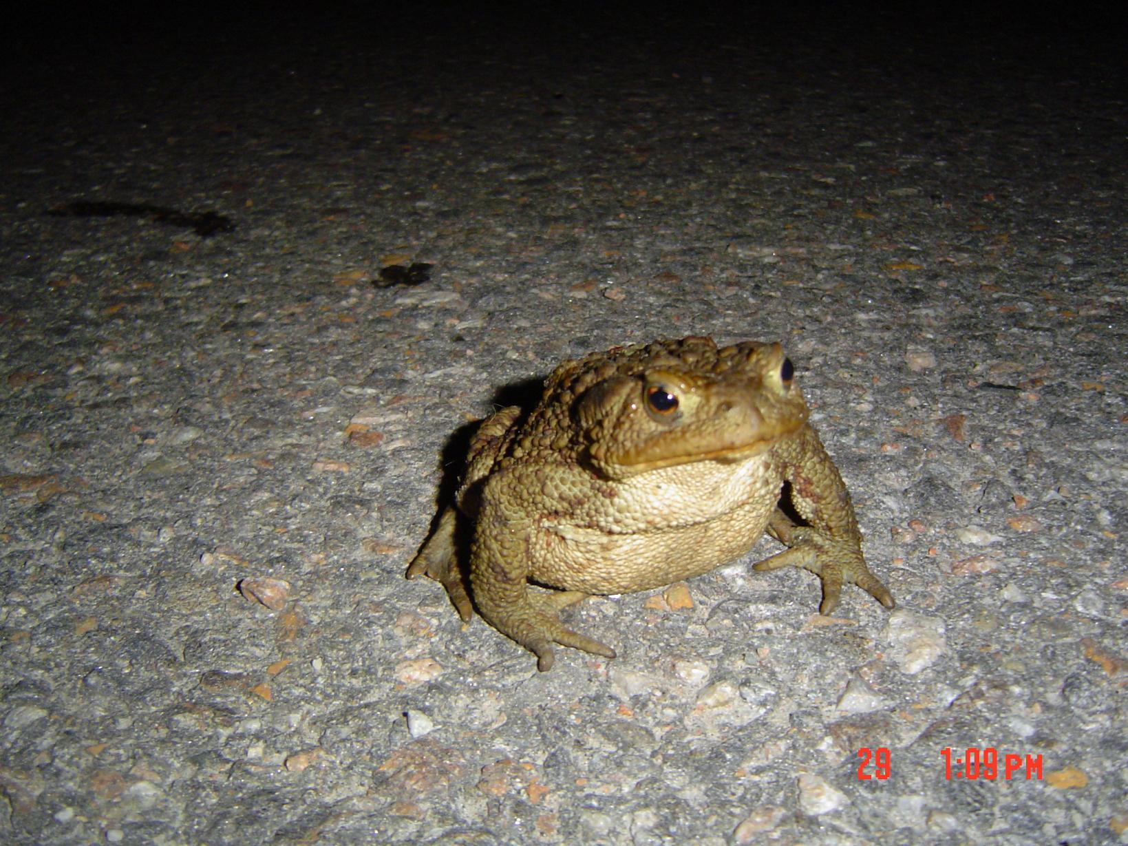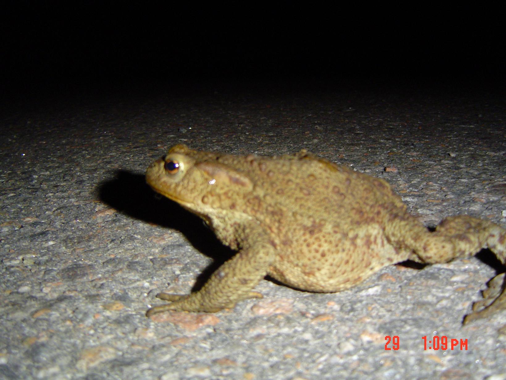 (Jag var tvungen att gå ut och "pinka natt" med vovven och kolla vad han hittade...-En padda som gick på vändplanen....)