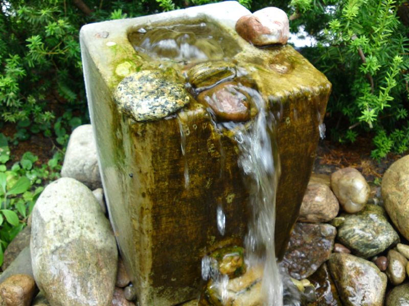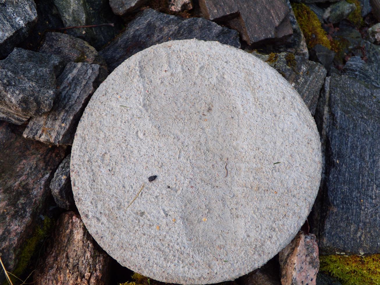 Gångplattor bakom dammen som Dealer gjort ett svagt fotavtryck i