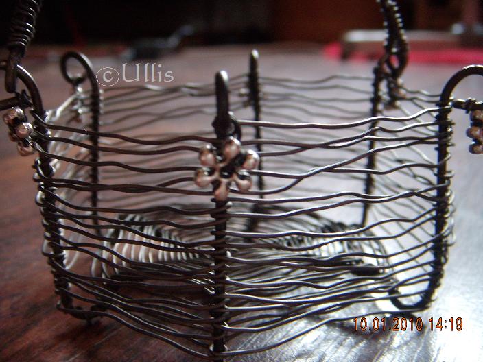En till trådkorg som jag håller på med just nu. Lägre än den andra. Foto kommer på den när den blir klar.