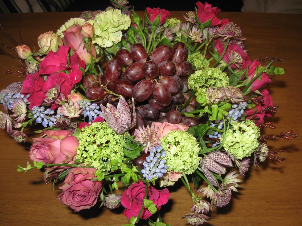 Jag vann en fin kruka med ett blomster- och fruktarrangemang i