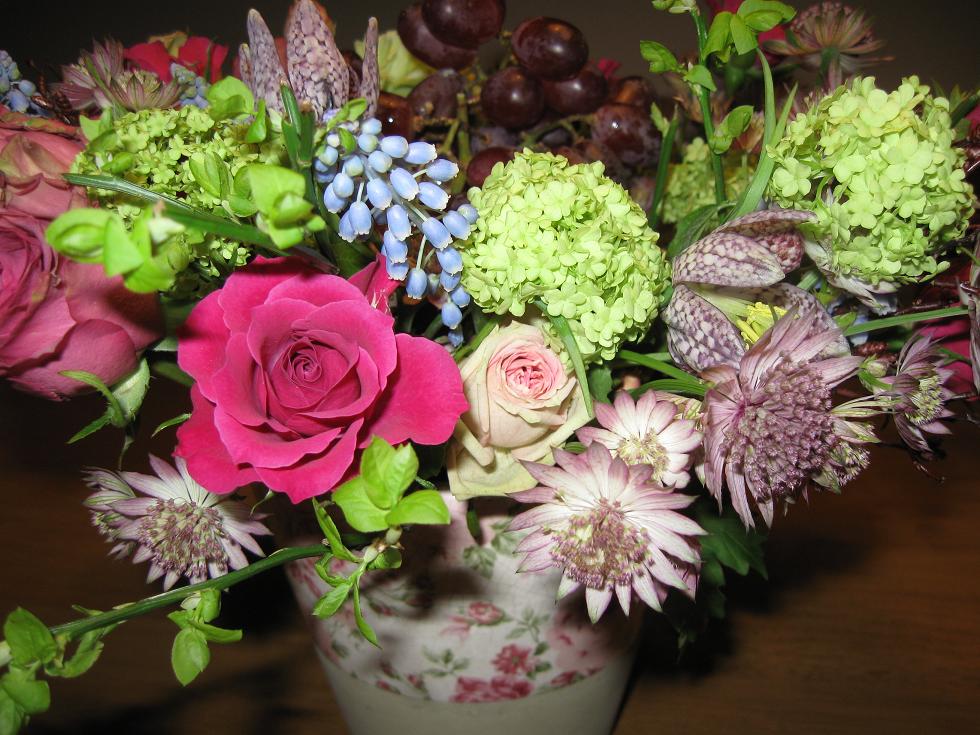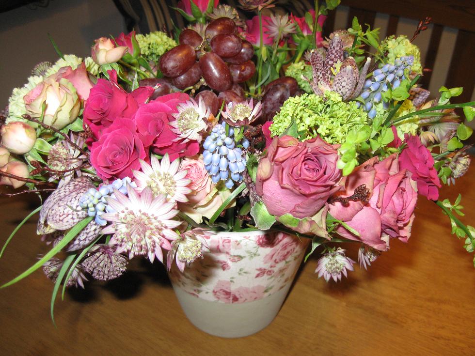 Två gånger per år inbjuder en blomsteraffär allmänheten till blomsterkväll i en kyrklokal i grannbyn. Det är tre duktiga florister som gör 10-15 rätt så avancerade arrangemang som vi besökare sen kan vinna på lotterna vi köper där. Vinsterna brukar vara värda 400-800 kronor/st och är väldigt olika i stilen. De har även ca 15 tröstpriser. I år var det en kruka dekorerad med lilamönstrat garn med en söt viol i som var tröstpriset.