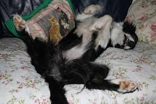 Milla har en sån härlig sovstil! Hon ligger gärna i soffan och sover och ofta ligger hon på rygg: Min underbara tjej!När jag tog fram kameran så vaknade hon så klart men låg kvar medan jag tog kort! Hon snurrade runt lite bara!