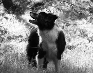 Herre j...ar!!! Ursäkta gapflabbet. Min gamla katta såg oroväckande lik ut den där, hmm, hunden på bilden när vi var tvungna att raka henne. Ja, den har verkligen ett drag av Gremlins över sig. Har en bild på 'Kätan' också från dagens promenad. Denna hunden kan konsten att njuta av att vara i skogen.