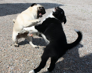Tim har fått busa hela förmiddagen med hunden på jobbet. En Mops-tant vid namn Babsan. Det var ungefär lika vilt som det ser ut men de hade hur kul som helst.