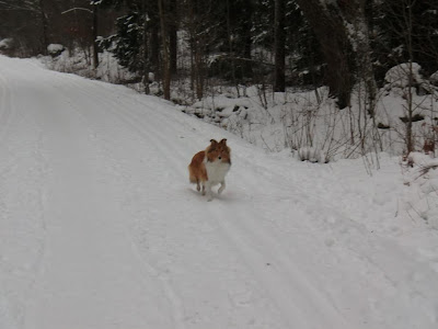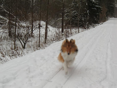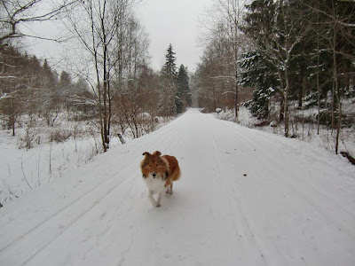 Tar mig en runda här bland alla fina bilder! Härligt!!! Ja, bara att instämma: Milla på promenad Viggo då? Han ligger nu och vilar efter promenad. Vi har snö här i Malmö, inte så vanligt att den ligger kvar så här. Han älskar det! Stora möjligheter till lek o bus... ja, så det där med att "gå fint" blir det inte så mycket med... Nåväl, här ser ni Viggos två favoritlägen: Bus & Sova Bus Sova