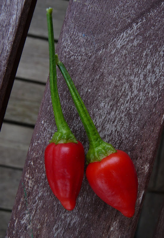 Första frukten har nu visat sig, det blev Cayenne Long Slim som blev först. Detta efter ett ärligt försök att ta död på alla. Var bortrest i 12 dagar så de fick klara sig utan vatten så länge. Den enda som synes ha strukit med var dock min andra Cayenne Long Slim. Övriga ser ut att ha överlevt. T.o.m. de som stod på lit de parade i fönstret klarade sig och de har dessutom små krukor (dessa står och väntar på döden i brist på plats).