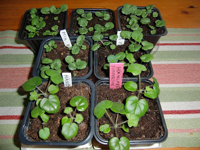 Ett par Heliotrop har tittat upp och blomstertobak och lejongap  . Men inget i de krukor som skulle stå inne i tre veckor innan stratifiering...