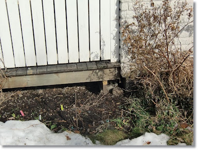 Marken har redit sig. Nu är det bara till å vänta några dagar till den sista snön smält å sen börja så rädisor och krasse. Dessutom syns vitlöksblasten redan!
