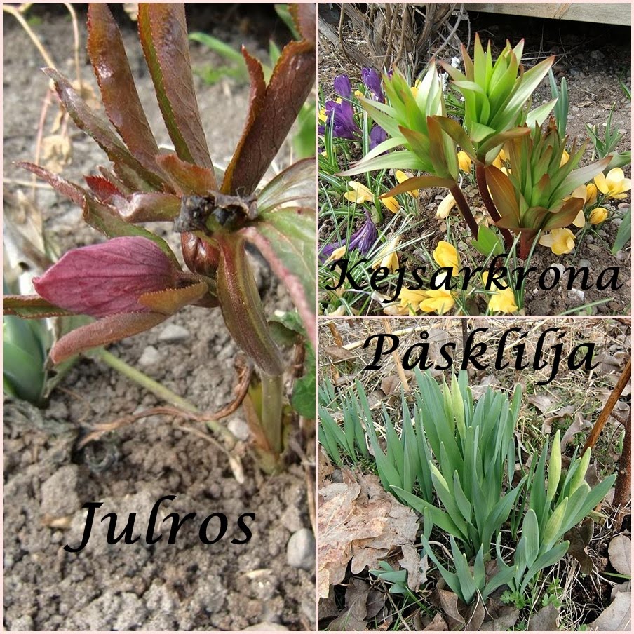Julrosen jag köpte förra året har fått en knopp...så härligt! Påskliljorna börjar också att knoppas! Kejsarkronan växer som bara den för varje dag!  Det blommar mer och mer i trädgården. Idag fick jag se att Lungörten börjat blomma och en primula visade också sina knoppar. Den här vivan påminner om gullvivan men blommar tidigare än den vanliga gullvivan. Jag tror det är en Lundviva men jag är inte säker eftersom namnlappen har försvunnit. Scillan och vårstjärnan bjuder också på ljuvlig blomning!