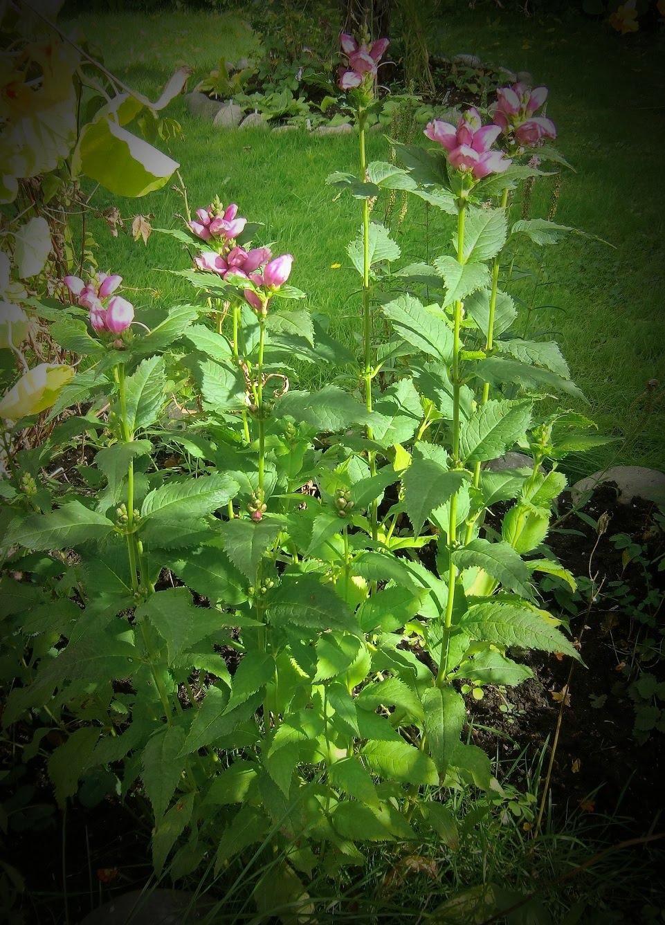 Härliga bilder Red Top!! Sköldpaddor i trädgården ...har ni såna? Det har jag och dom är riktigt fina nu! Ja nu är det så klart en blomma jag pratar om...hihi. Den heter Sköldpaddört, Chelone obliqua, och är riktigt häftig:  Ser ni alla sköldpaddorna?  Tänk vilka härliga blommor det finns!